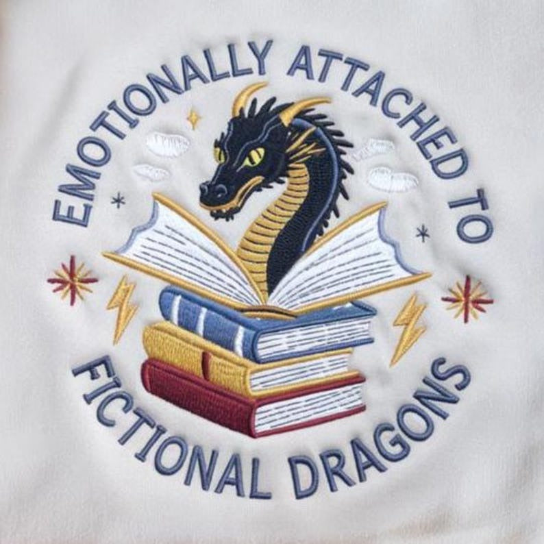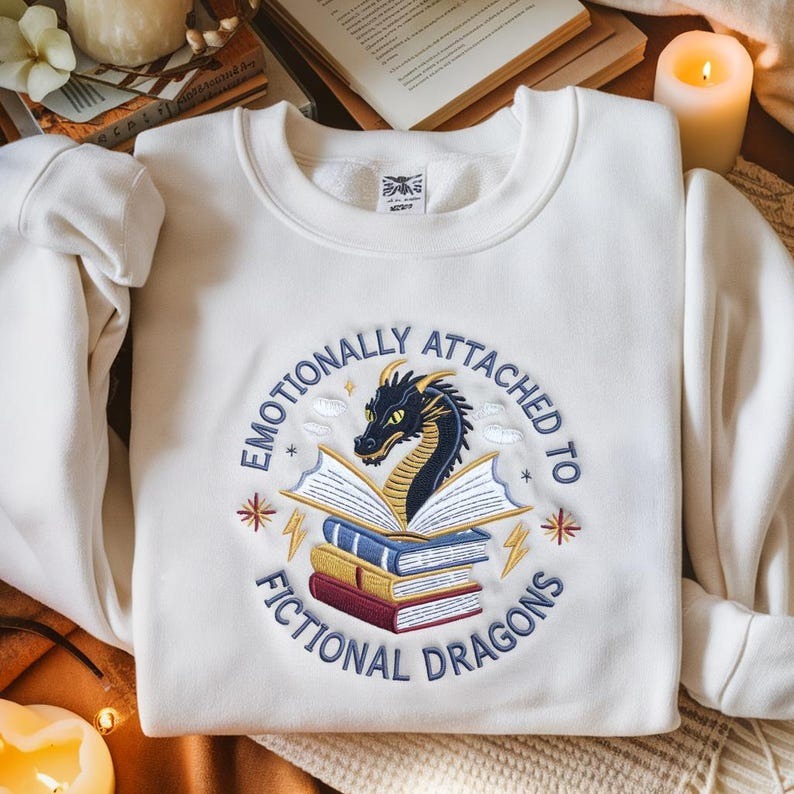 Emotionally Attached to Fictional Dragons Bookish Embroidered Sweatshirt, Fantasy Book Reader Sweatshirt, Bookworm Shirt, Dragon Sweatshirt