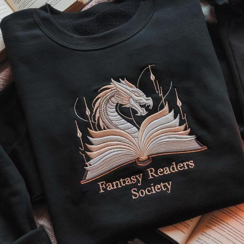 Fantasy Readers Society Embroidered Sweatshirt, Dragon Lover Shirt, Mythical Creatures Book Shirt, Bookish Shirt, Fantasy Book Lover Shirt