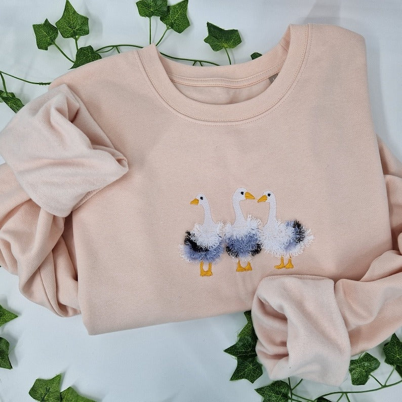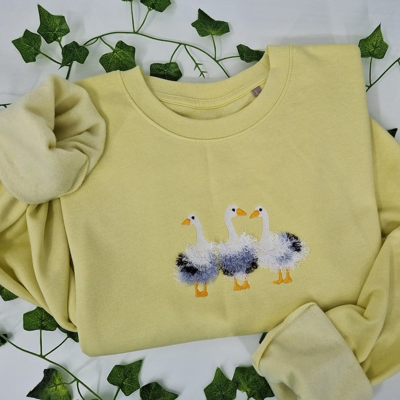 Fluffy goose embroidered Sweatshirt. 3D silly goose. Cozy sweatshirt with embroidery. Perfect gift or treat yourself.