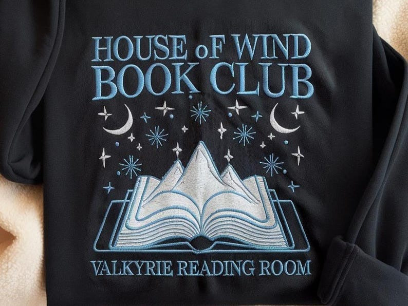 House Of Wind Book Club Embroidered Sweatshirt, ACOTAR Book Club Shirt, Night Court Throne Of Glass, Valkyrie Reading Room, Velaris Sweater