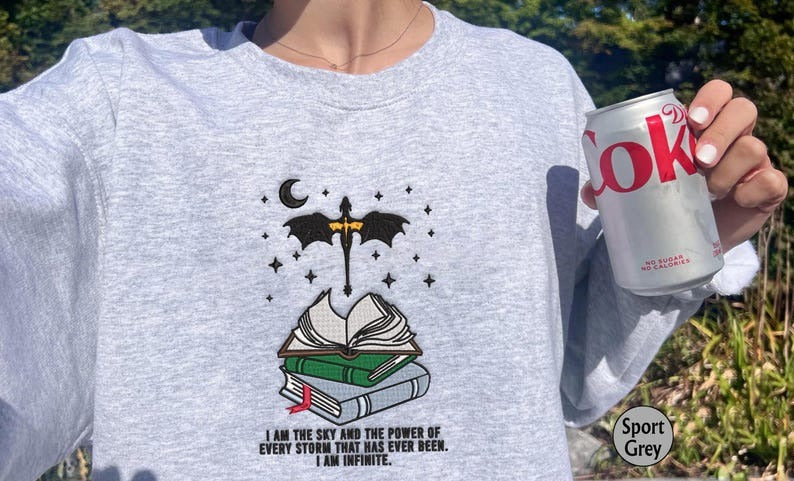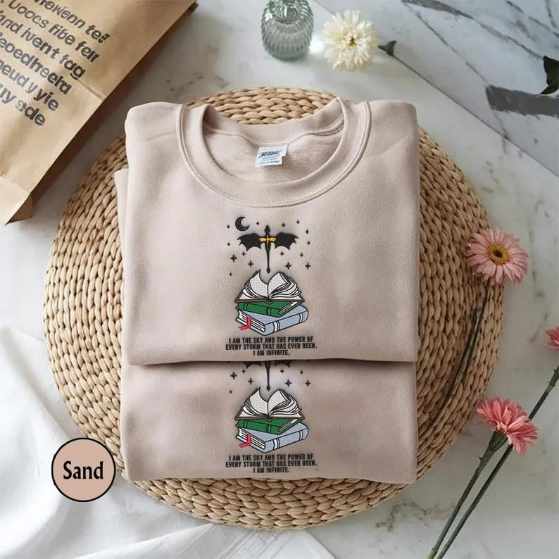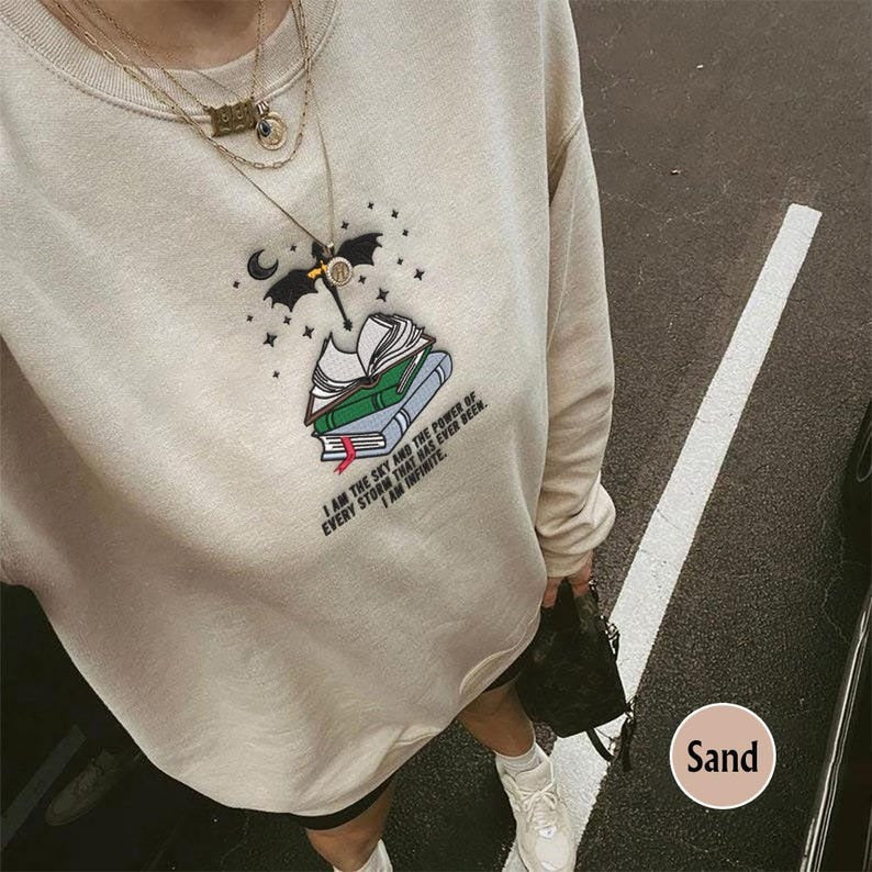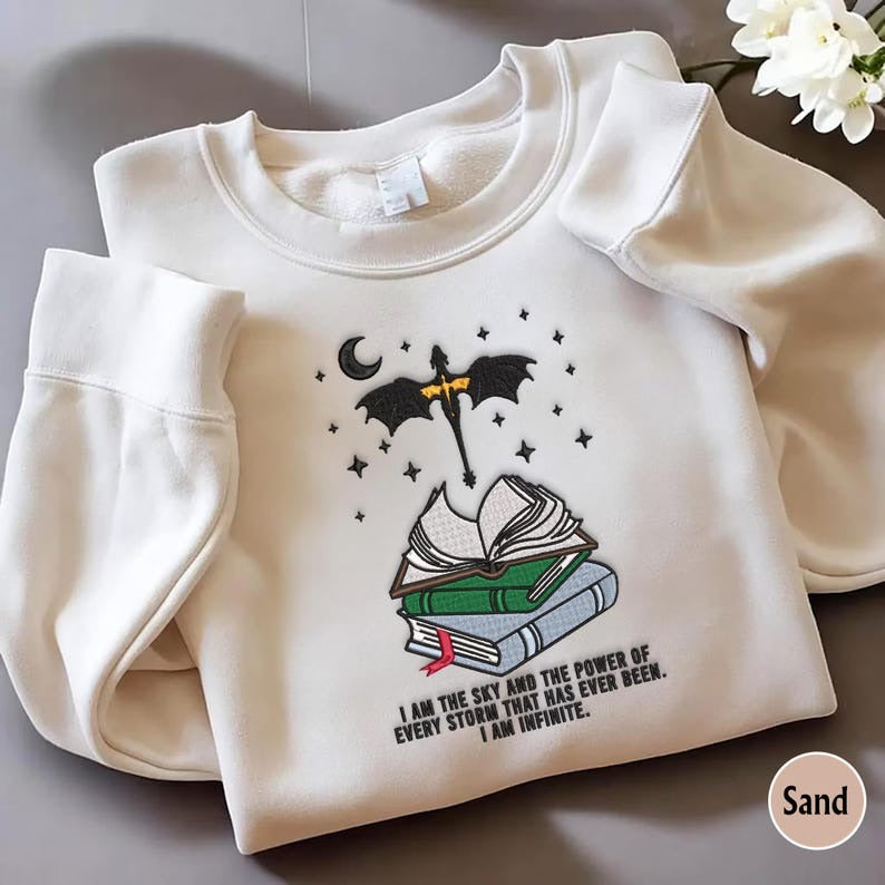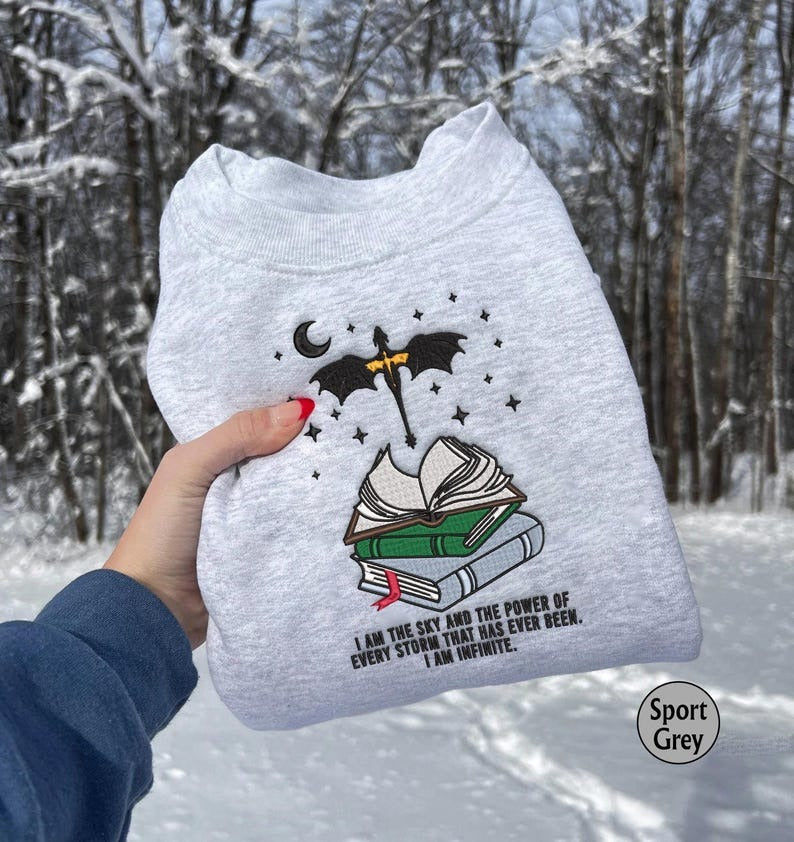 I Am The Sky And The Power Of Every Storm That Has Ever Been Embroidered Sweatshirt, I Am Infinite Shirt, Dragon Book, Basgiath War College