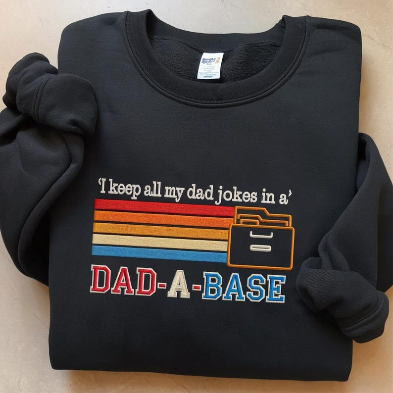 I Keep All My Dad Jokes In A Dad-a-base Embroidered Sweatshirt, Dad Shirt, New Dad Gift, Daddy Shirt, Father's Day Gift, Best Dad Ever Shirt