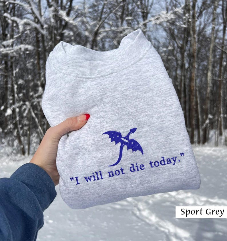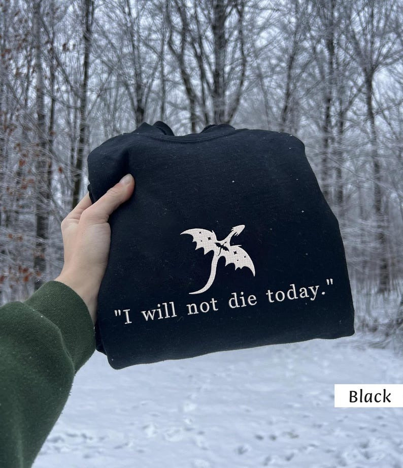 I Will Not Die Today Gold and Black Dragon Embroidered Sweatshirt, Book Lover Shirt, Fourth Wing Sweatshirt, Romantasy Book, Dragon Rider