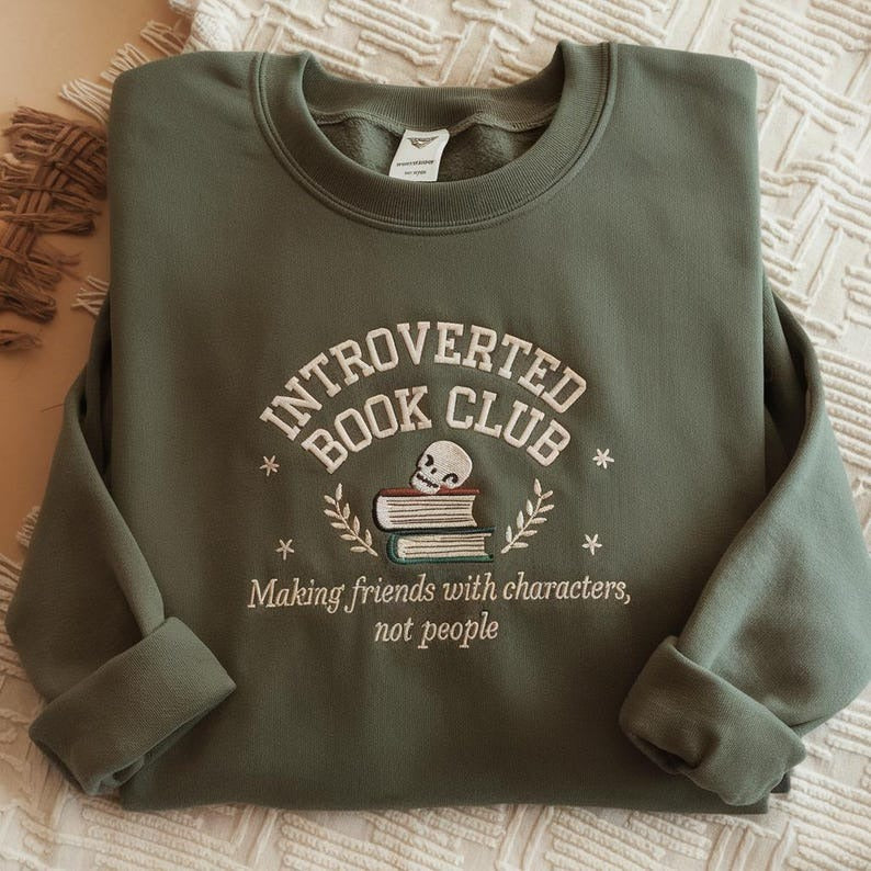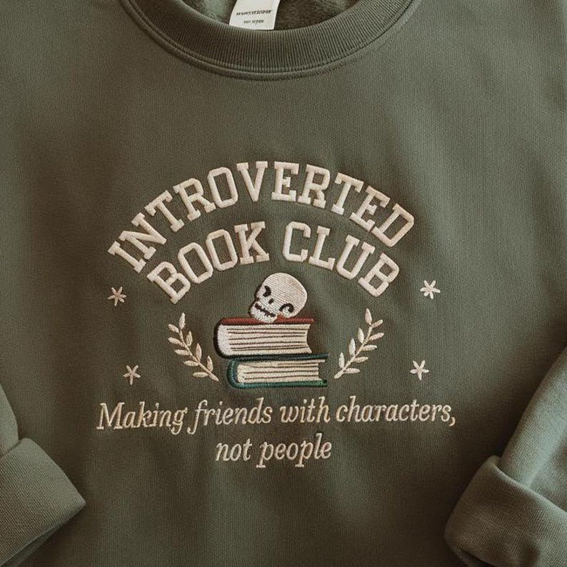 Introverted Reading Book Club Embroidered Sweatshirt, Shirt for Antisocial Romance Reader and Book Lover, Vintage Distressed Bookish Shirt