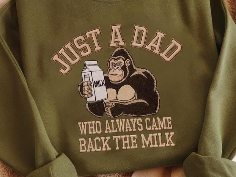 Just A Dad Who Always Came Back With The Milk Bigfoot Embroidered Sweatshirt, Funny Dad Shirt, Fathers Day Shirt, Bigfoot Humor Dad Sweater