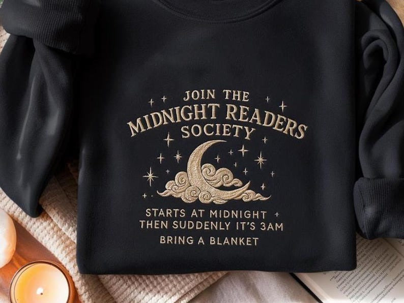 Late Night Readers Book Club Embroidered Sweatshirt, Reading Shirt for Night Owl Reader, Bookstagram Booktok Merch, Literary Bookworm Shirt