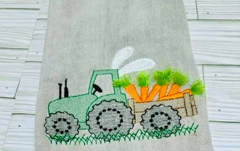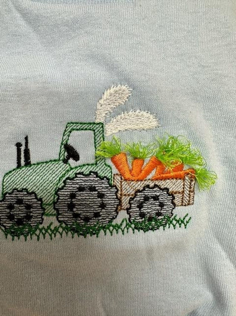 Light Stitch Easter Tractor Boys Fluffy Embroidered Sweatshirt, Fringe Embroidered Sweatshirt, Embroidered Sweatshirt