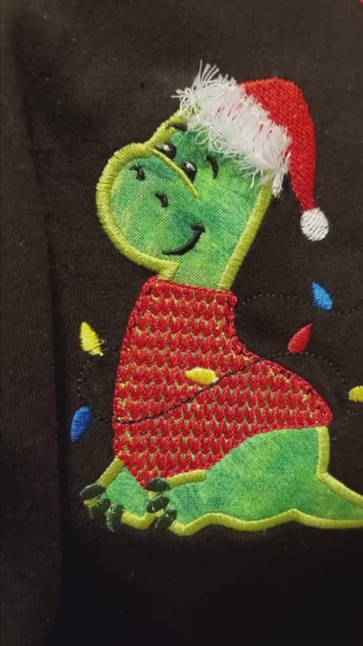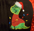 Little Dinosaur Santa Christmas Lights Fluffy Embroidered Sweatshirt, Fringe Embroidered Sweatshirt, Embroidered Sweatshirt