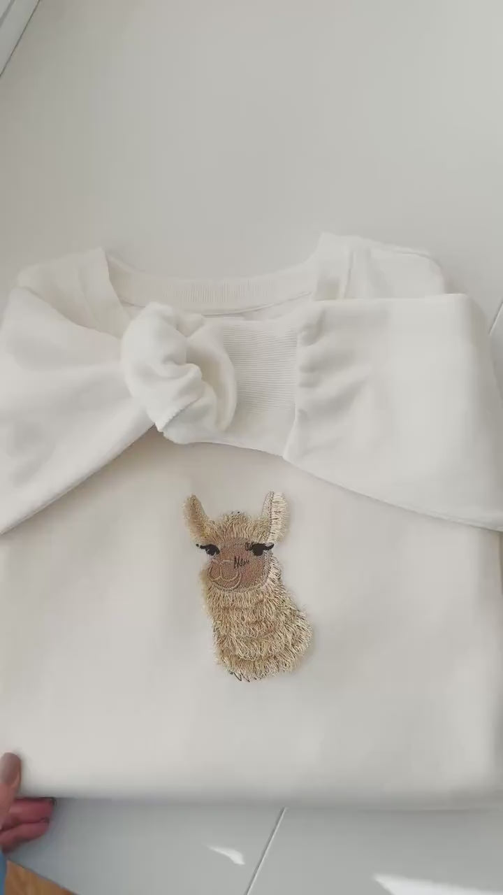 Llama Alpaca Fluffy Embroidered Sweatshirt, Fringe Embroidered Sweatshirt, Embroidered Sweatshirt