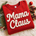 MAMA Claus Chenille Yarn Embroidered Sweatshirt, Family Sweatshirt, Custom Xmas Shirt For Mimi, Nana, Christmas Gift For Grandma