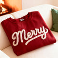 Merry Christmas Chenille Yarn Embroidered Sweatshirt, Christian Embroidery Shirt, Holiday Xmas Gifts