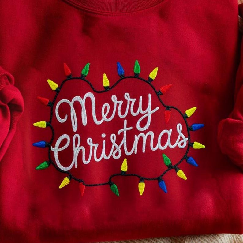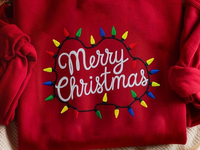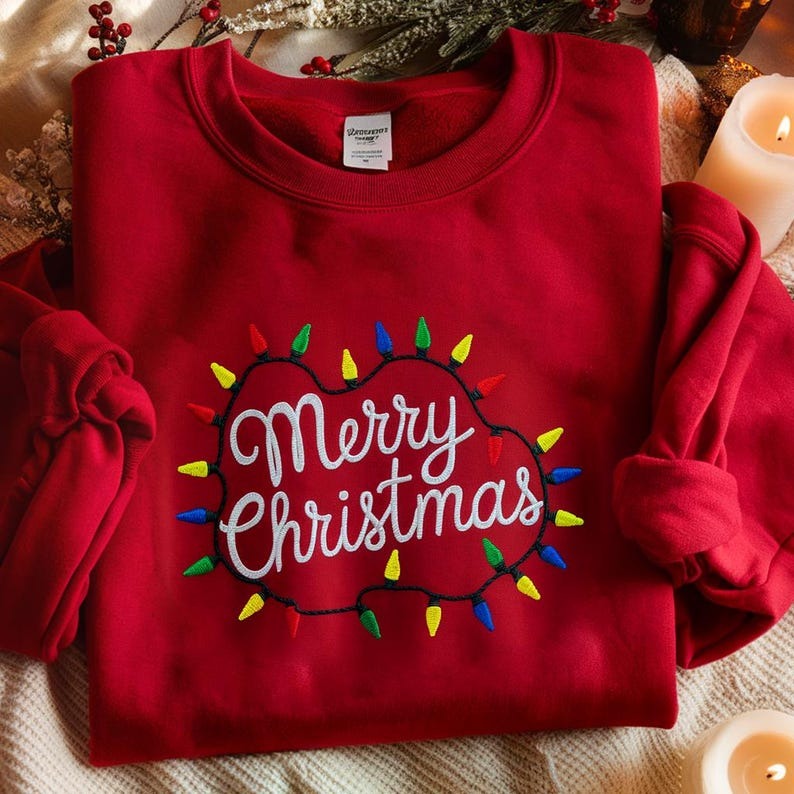 Merry Christmas Embroidered Sweatshirt, Christmas Lights Sweater, Merry Christmas Shirt, Family Christmas Sweatshirt, Christmas Sweatshirt