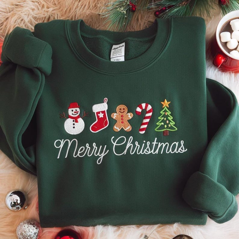Merry Christmas Embroidered Sweatshirt, Embroidered Gingerbread Sweatshirt, Snowman Xmas Tree Shirt, Christmas Sweater, Christmas Vibe Shirt
