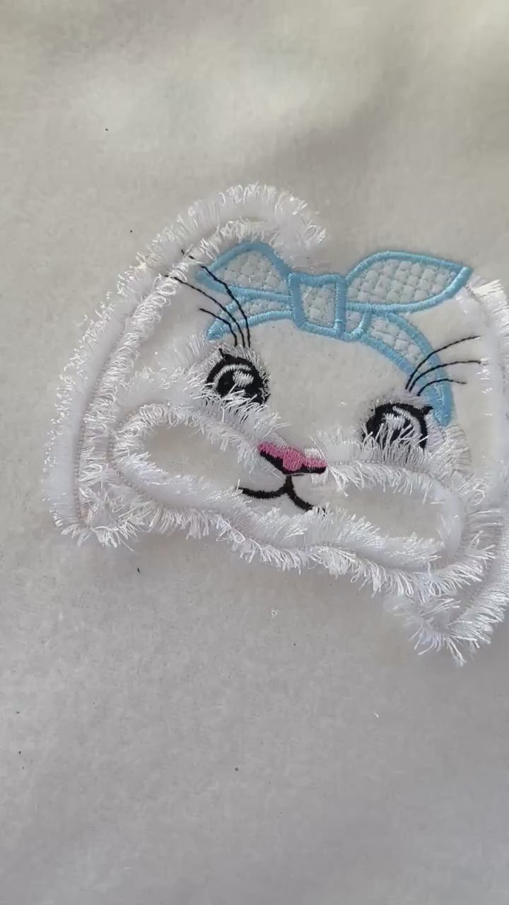 Mini Small Bunny Face Bandanna Fluffy Embroidered Sweatshirt, Fringe Embroidered Sweatshirt, Embroidered Sweatshirt
