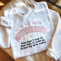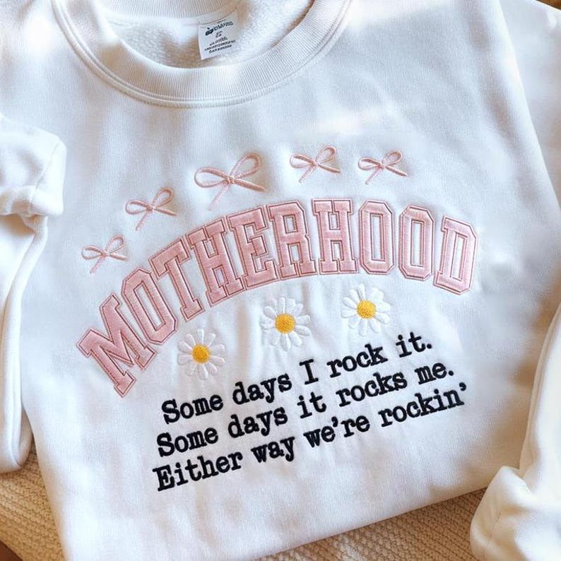 Motherhood Coquette Bow Embroidered Sweatshirt, Retro Mother Hood Shirt, Funny Mom Sarcastic Mama Shirt, Mom Sweatshirt, Mother's Day Shirt
