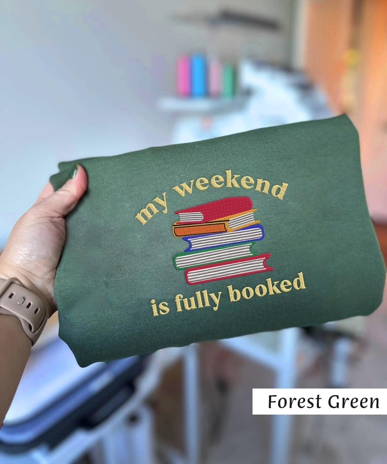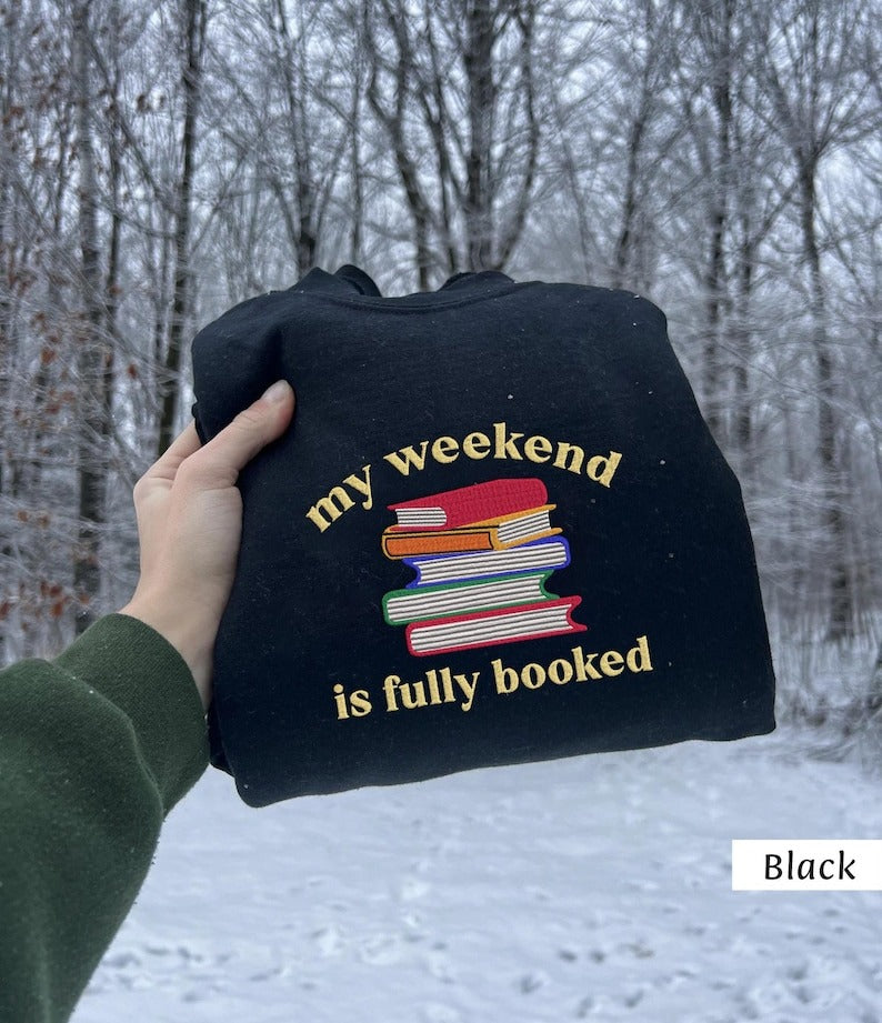 My Weekend is Fully Booked Embroidered Sweatshirt, Book Lover Sweatshirt, Embroidered Shirt, Gift for Book Lover, Reading Bookish Sweatshirt
