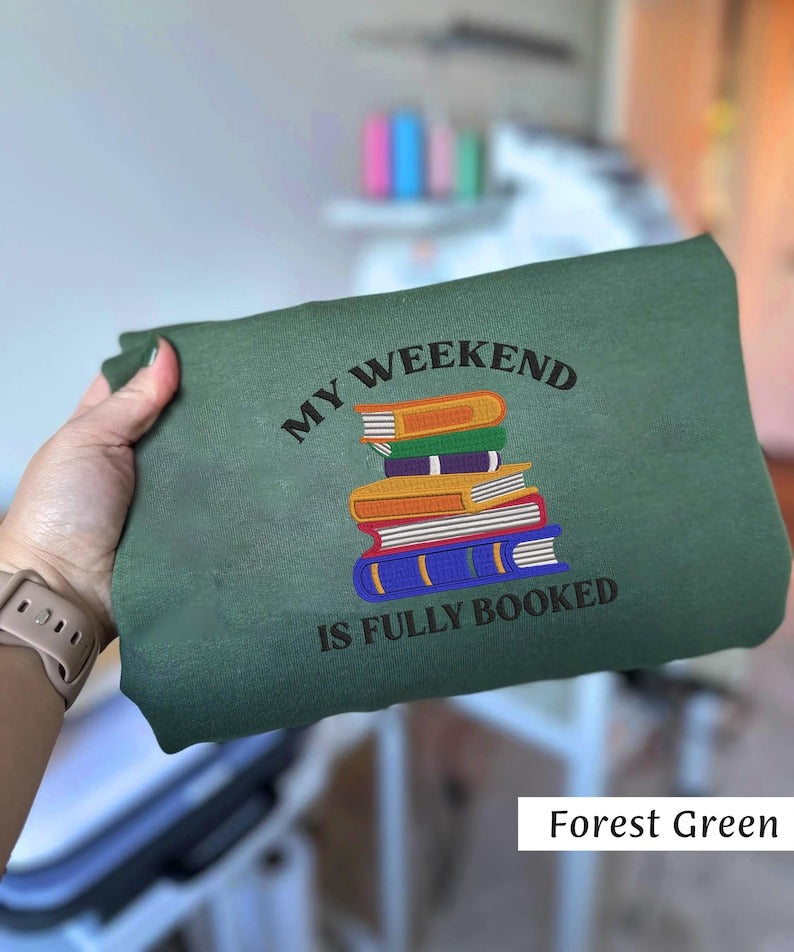 My Weekend is Fully Booked Embroidered Sweatshirt, Book Lover Sweatshirt, Librarian Gift, Gift For Reader Gift Book Lover Bookish Sweatshirt