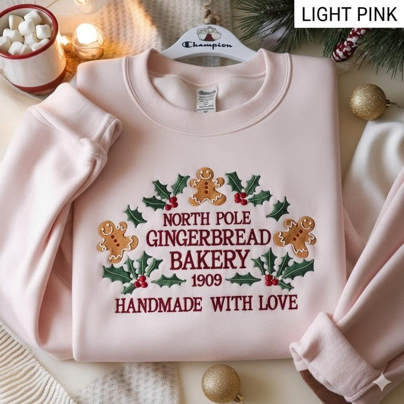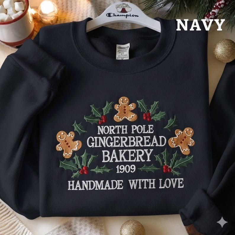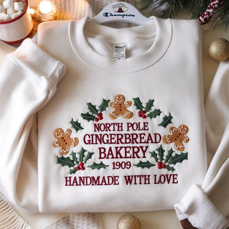 North Pole Gingerbread Bakery Embroidered Sweatshirt, Bakery Christmas Shirt, Cozy Christmas Shirt, Christmas Sweater, Gingerbread Sweater