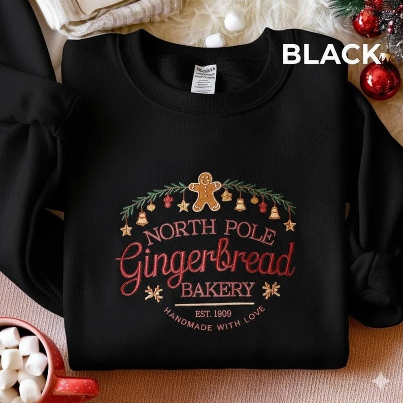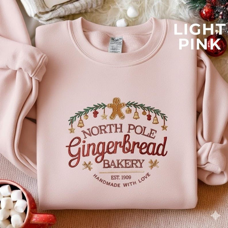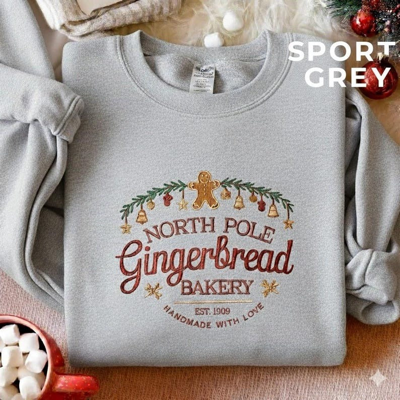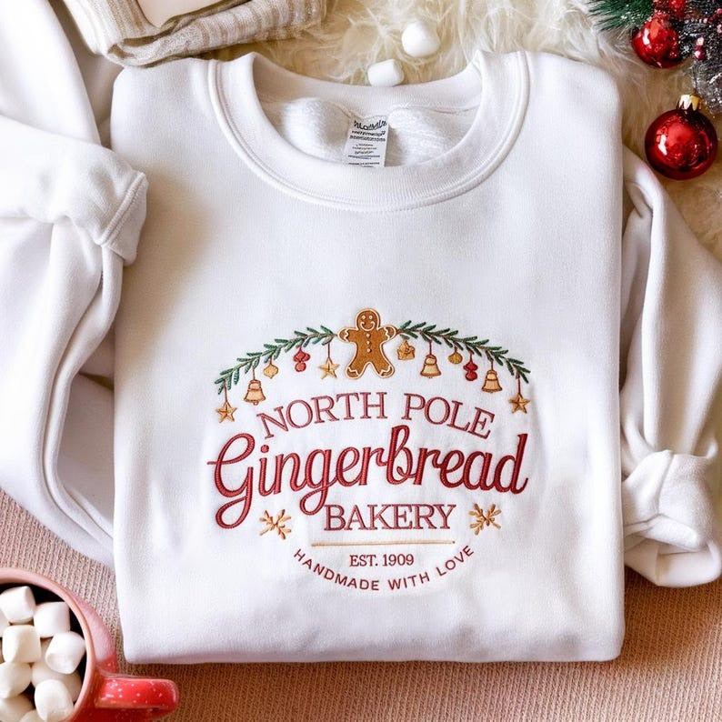 North Pole Gingerbread Bakery Embroidered Sweatshirt, Cozy Winter Shirt, Christmas Sweater, Gingerbread Sweatshirt, Bakery Christmas Shirt