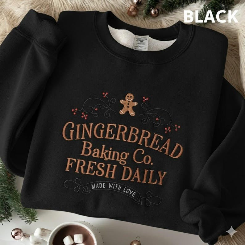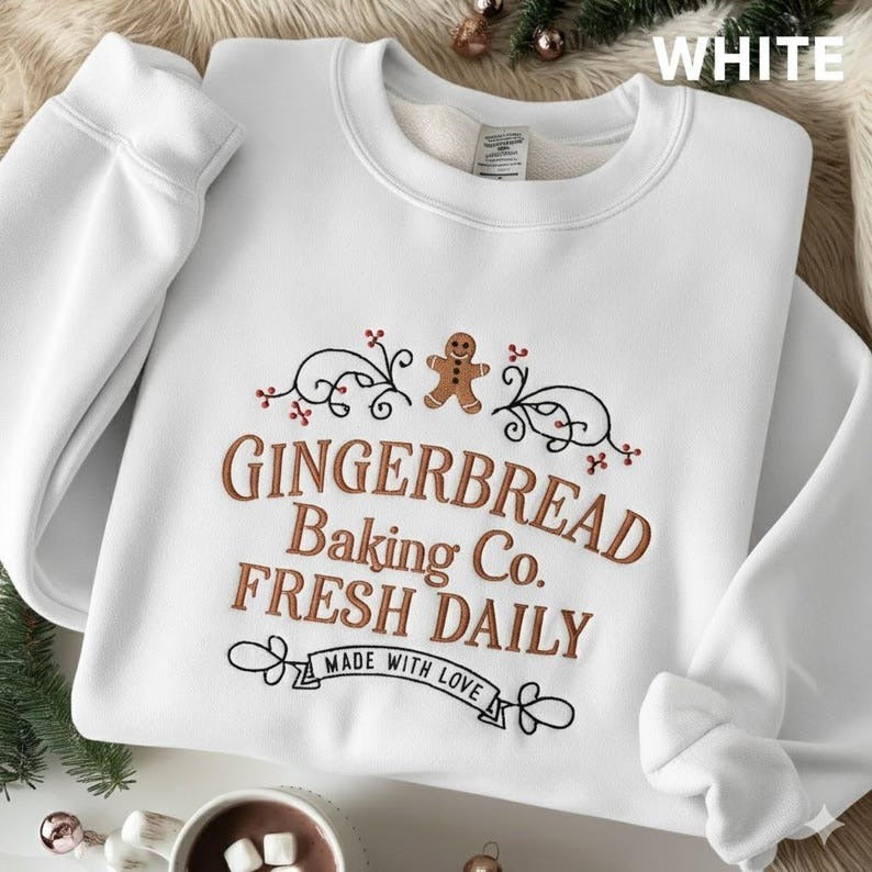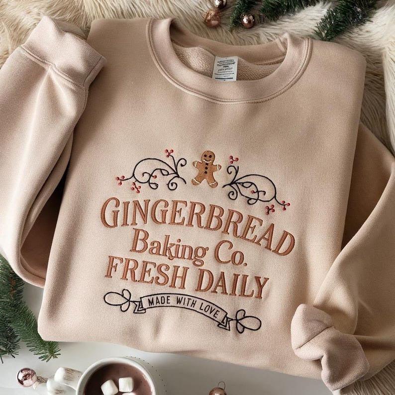 North Pole Gingerbread Embroidered Sweatshirt, Cozy Christmas Sweatshirt, Christmas Sweater, Gingerbread Sweatshirt, Bakery Christmas Shirt