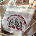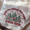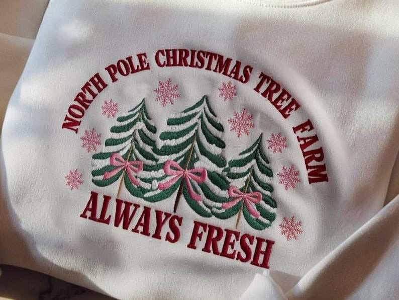 North Pole Pink Christmas Coquette Bow Embroidered Sweatshirt, Christmas Season Sweater, Christmas Tree Shirt, Family Christmas Sweatshirt