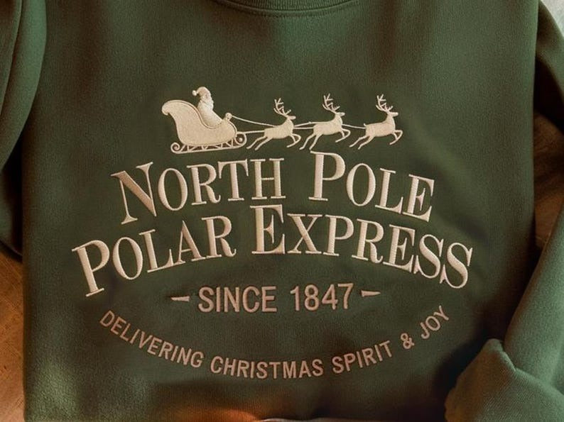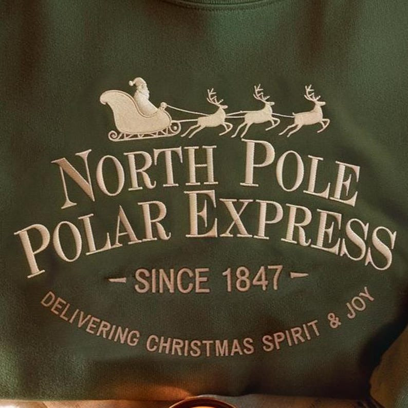 North Pole Polar Express Embroidered Sweatshirt, Vintage Holiday Sweatshirt, Christmas Gift Ideas, Party Sweatshirt, Christmas Sweatshirt