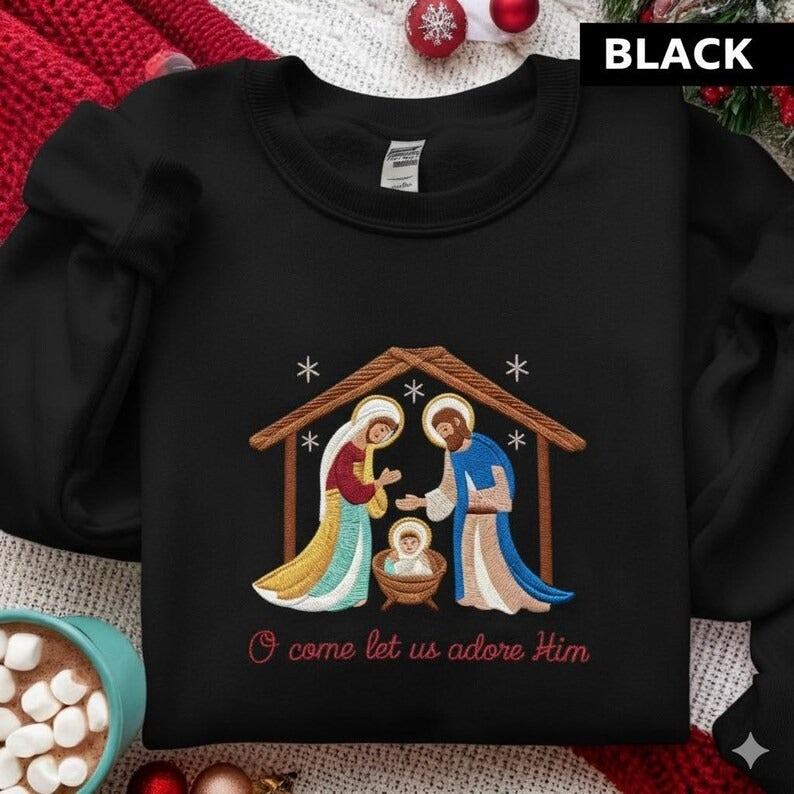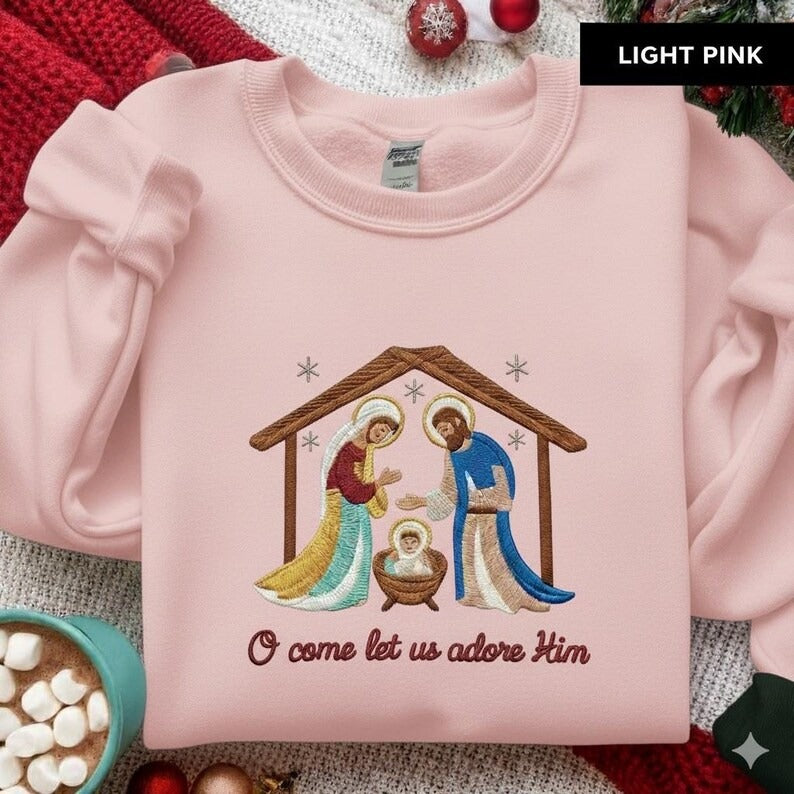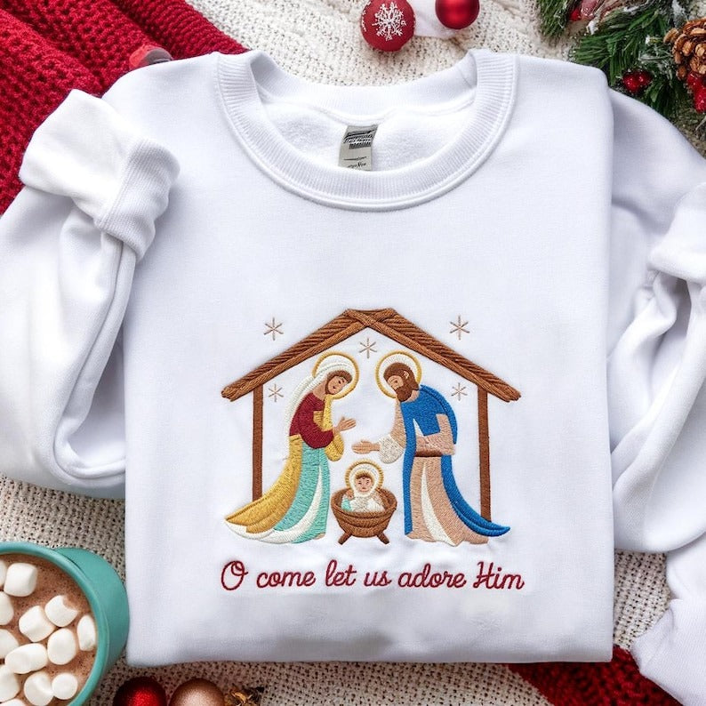 O Come Let Us Adore Him Embroidered Sweatshirt, Christmas Sweatshirt, Christmas New Year Shirt, Let Us Adore Him Shirt, Christmas Gift Shirt