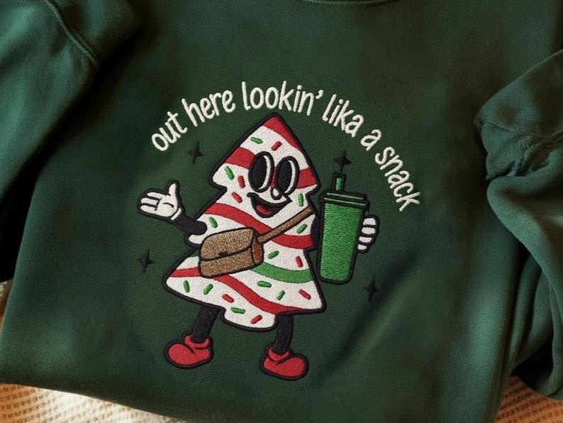 Out Here Lookin Like A Snack Embroidered Sweatshirt, Boojee Christmas Shirt, Christmas Tree Cake Shirt, Holiday Shirt, Christmas Sweatshirt