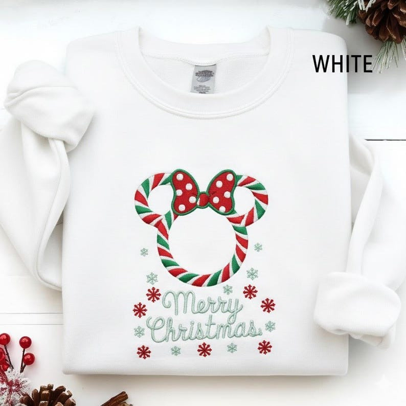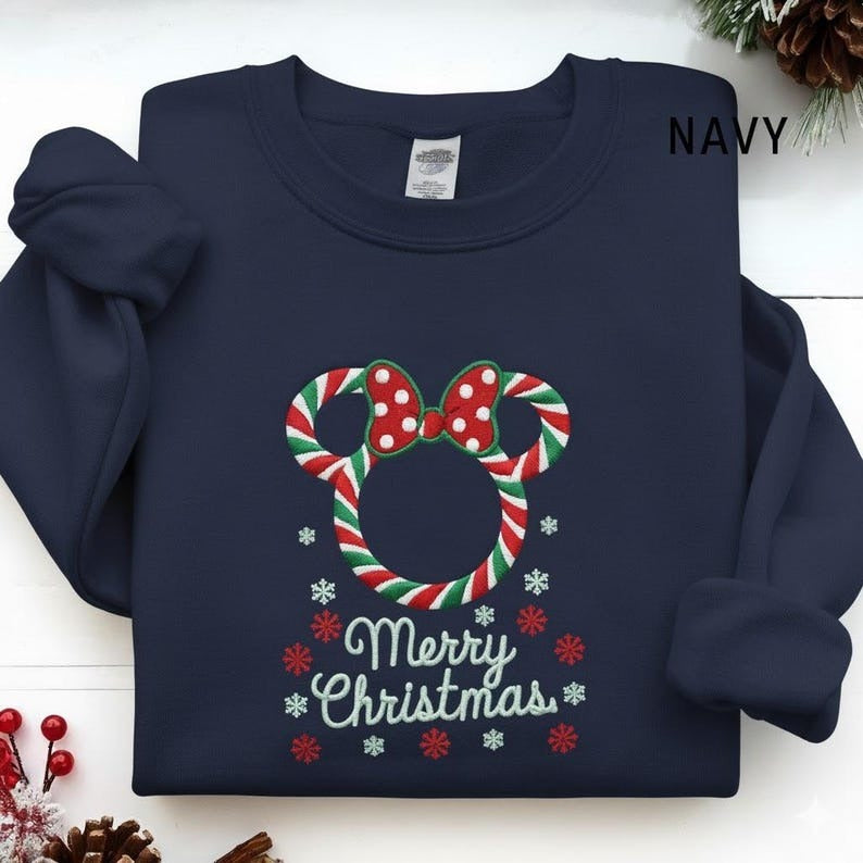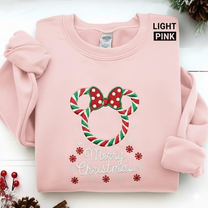 Peppermint Minnie Christmas Embroidered Sweatshirt, Minnie Mouse Christmas Sweater, Disney Holiday Shirt, Candy Cane Shirt, Merry Christmas