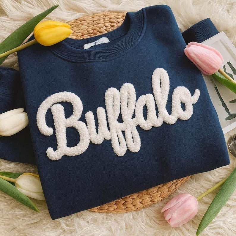 Once approved, the design is embroidered onto the sweatshirt and shipped to you via USPS.
