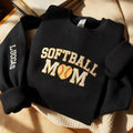 Personalized Softball Mom with Kids Name On Sleeve Embroidered Sweatshirt, Mom Shirt, Solfball Mom Sweatshirt, Gameday Cheer Mom Sweatshirt