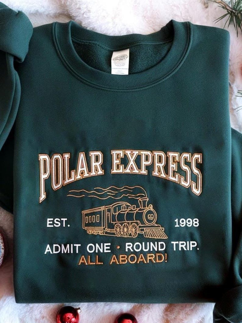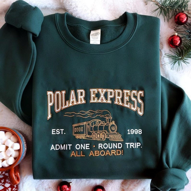 Polar Express Christmas Embroidered Sweatshirt, Christmas Sweatshirt, Polar Express Sweater, Vintage Christmas Sweater, Christmas Vibe Shirt