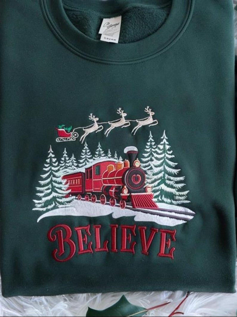 Polar Express Embroidered Sweatshirt, Christmas Sweatshirt, Christmas Believe Sweater, Merry Christmas, All Aboard Polar Express Sweatshirt