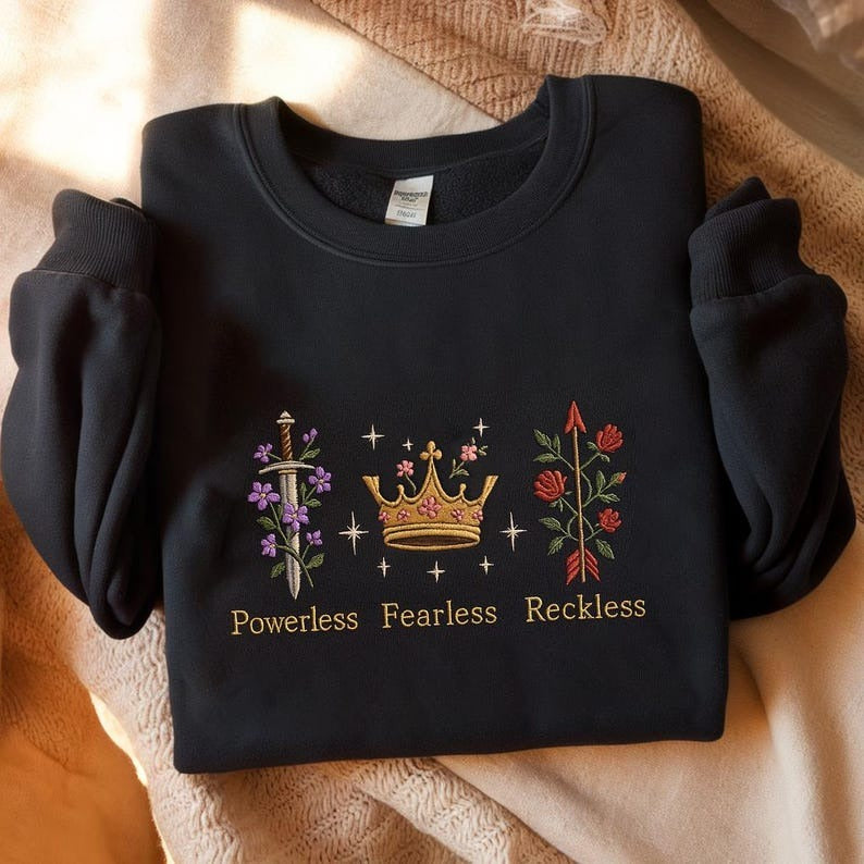 Powerless Bookish Embroidered Sweatshirt, Powerless Shirt, Fearless Shirt, Fantasy Book Sweatshirt, Bookworms Shirt, Romantic Quotes Shirt