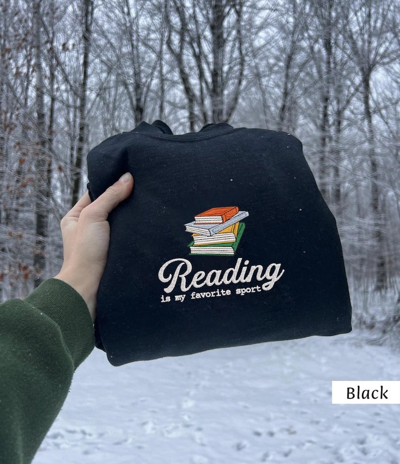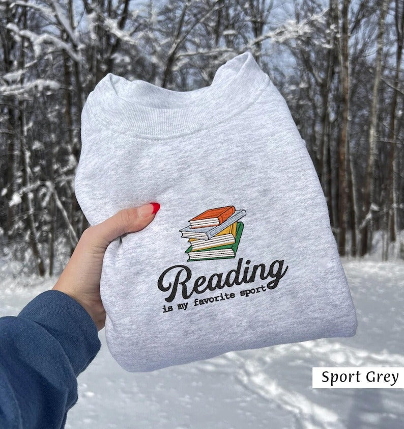 Reading Is My Favorite Sport Embroidered Sweatshirt, Reading Sweatshirt, Bookish Shirt, Gift For Her, Book Lover Sweatshirt, Book Nerd Gift