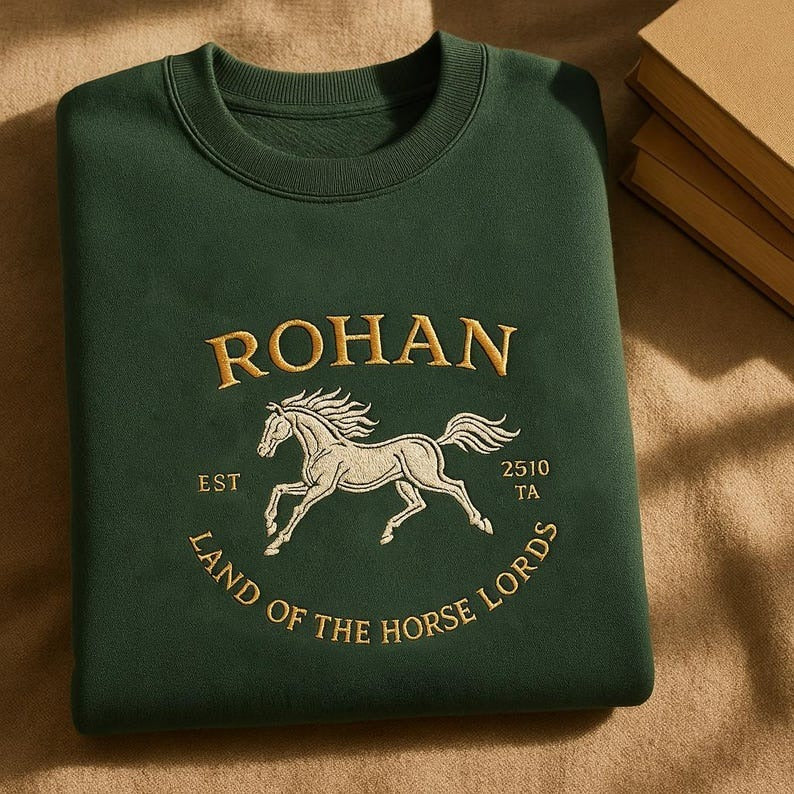 Rohan Embroidered Sweatshirt, The Two Towers Sweatshirt, Hobbiton Shirt, Fantasy Book Shirt, Middle Earth Wizard Journey Fellowship Shirt