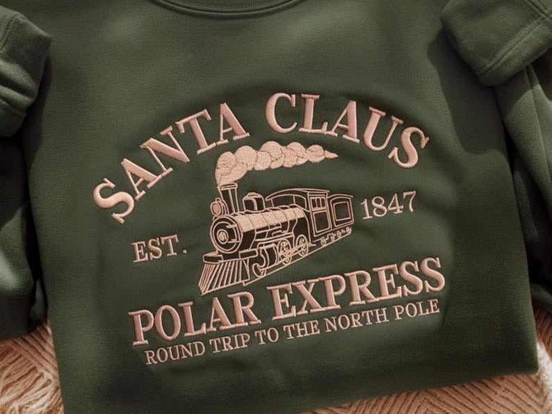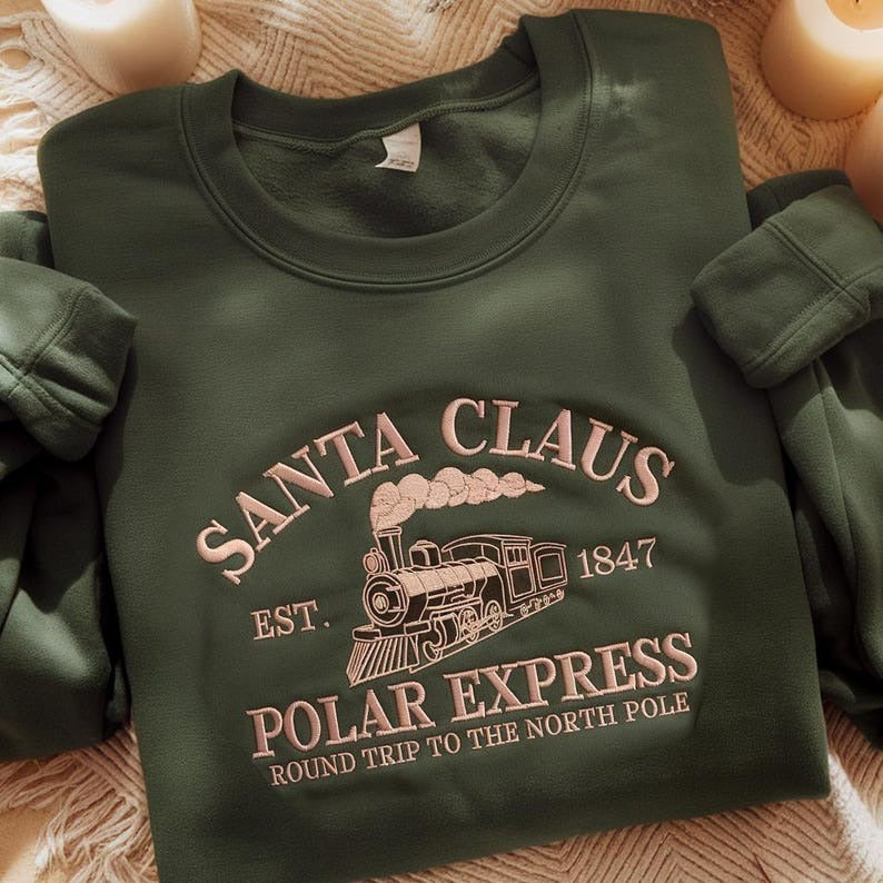 Santa Claus Polar Express Embroidered Sweatshirt, Vintage Holiday Sweatshirt, Christmas Gift Ideas, Party Sweatshirt, Christmas Sweatshirt
