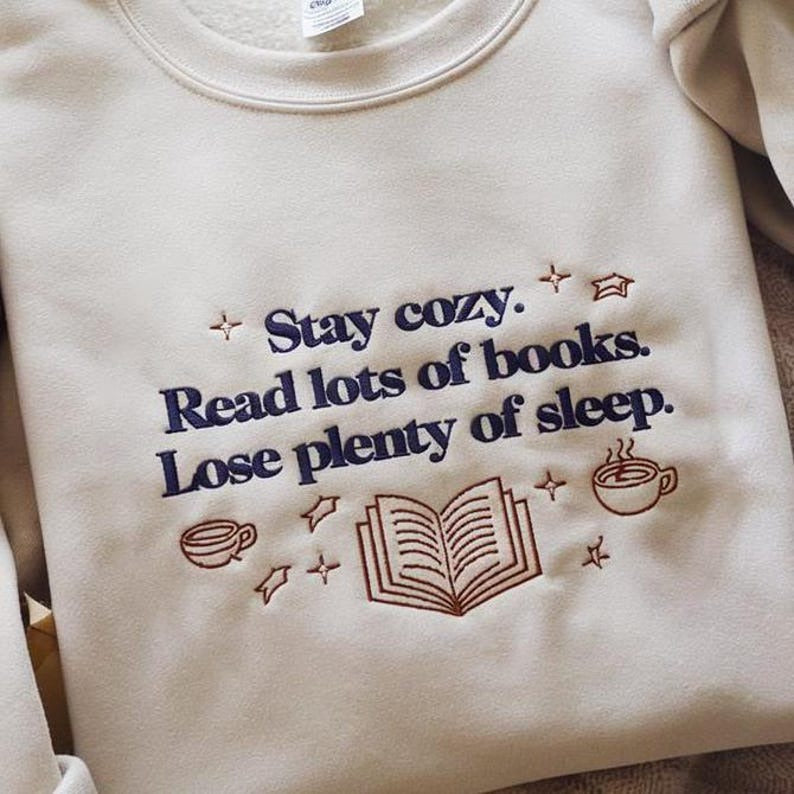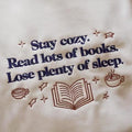 Stay Cozy Read Books Embroidered Sweatshirt, Funny Bookish Shirt, Book Lover Book Addict Romance Reader Light Academia Minimal Sweatshirt