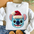 Stitch Christmas Latch Hook Yarn Faux Art Shirt, Disney Crochet Style Holiday Tee, Fluffy Stitch Embroidery Look Sweatshirt, Cozy Xmas Gift