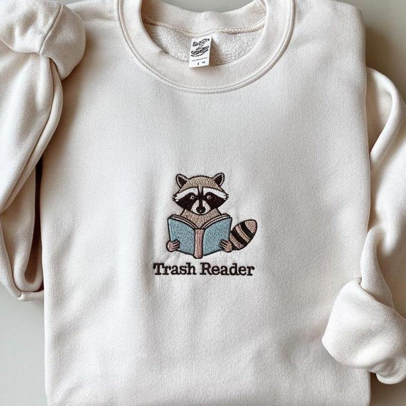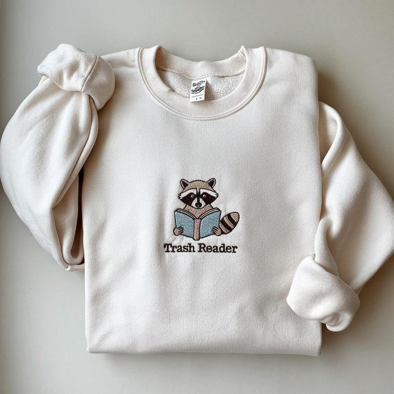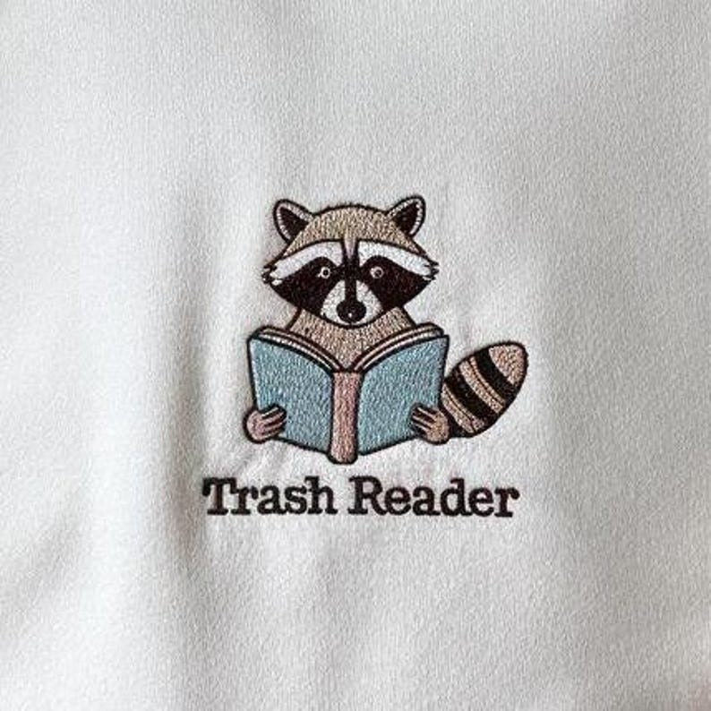 Trash Reader Embroidered Sweatshirt, Smut Reader Shirt, Bookish Raccoon Shirt, Trash Reader Romance Goblincore Fan, Smutty Books Sweatshirt
