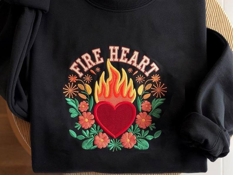 Vintage Fireheart Embroidered Sweatshirt, Fourth Wing Sweatshirt, Aelin Galathynius Shirt, Fantasy Book Dragon Shirt, Throne Of Glass Merch