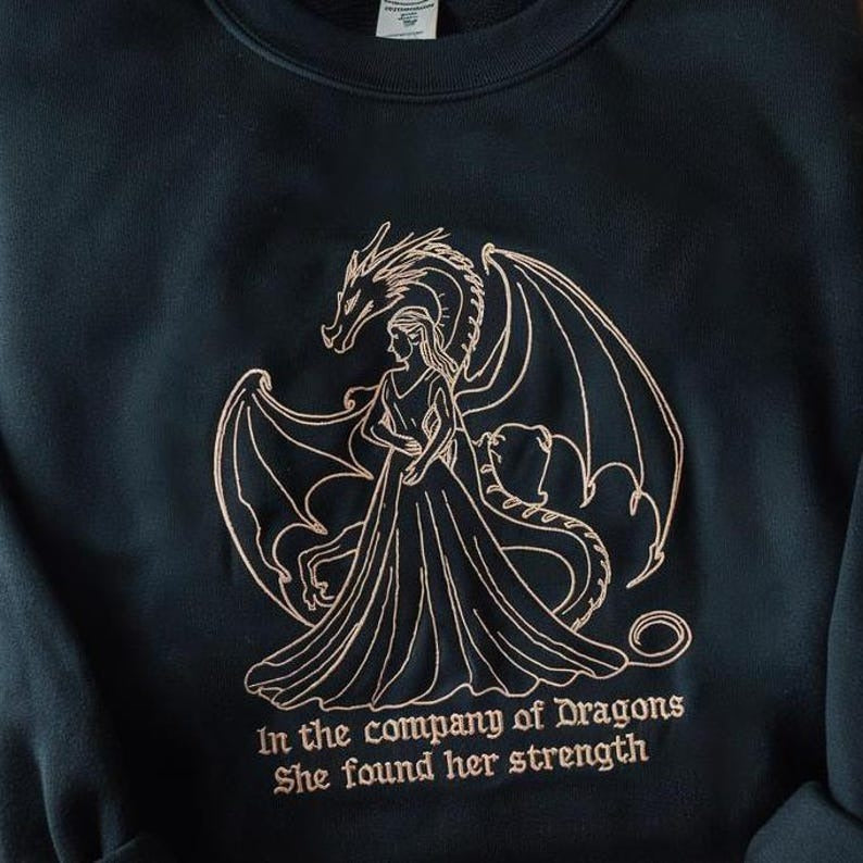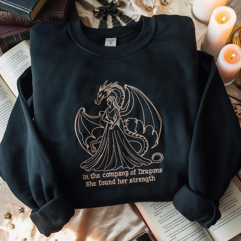 Wild Fae Woman Whimsigoth Medieval Ebroidered Sweatshirt, Renaissance Shirt, Wyvern Art Nouveau Bookish Shirt, Bookworm Ren Faire Book Shirt